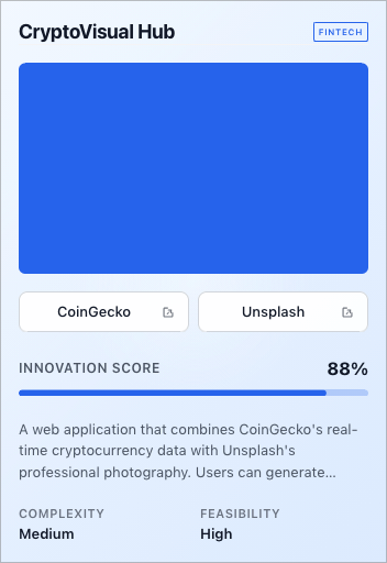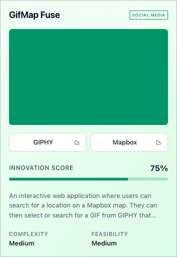 I built a prototype of an app idea generator that randomly paired 2 APIs from a curated list. An AI tool, Claude, would then generate an app idea, a problem statement, a proposed solution, an implementation method, market potential, and an overall score.